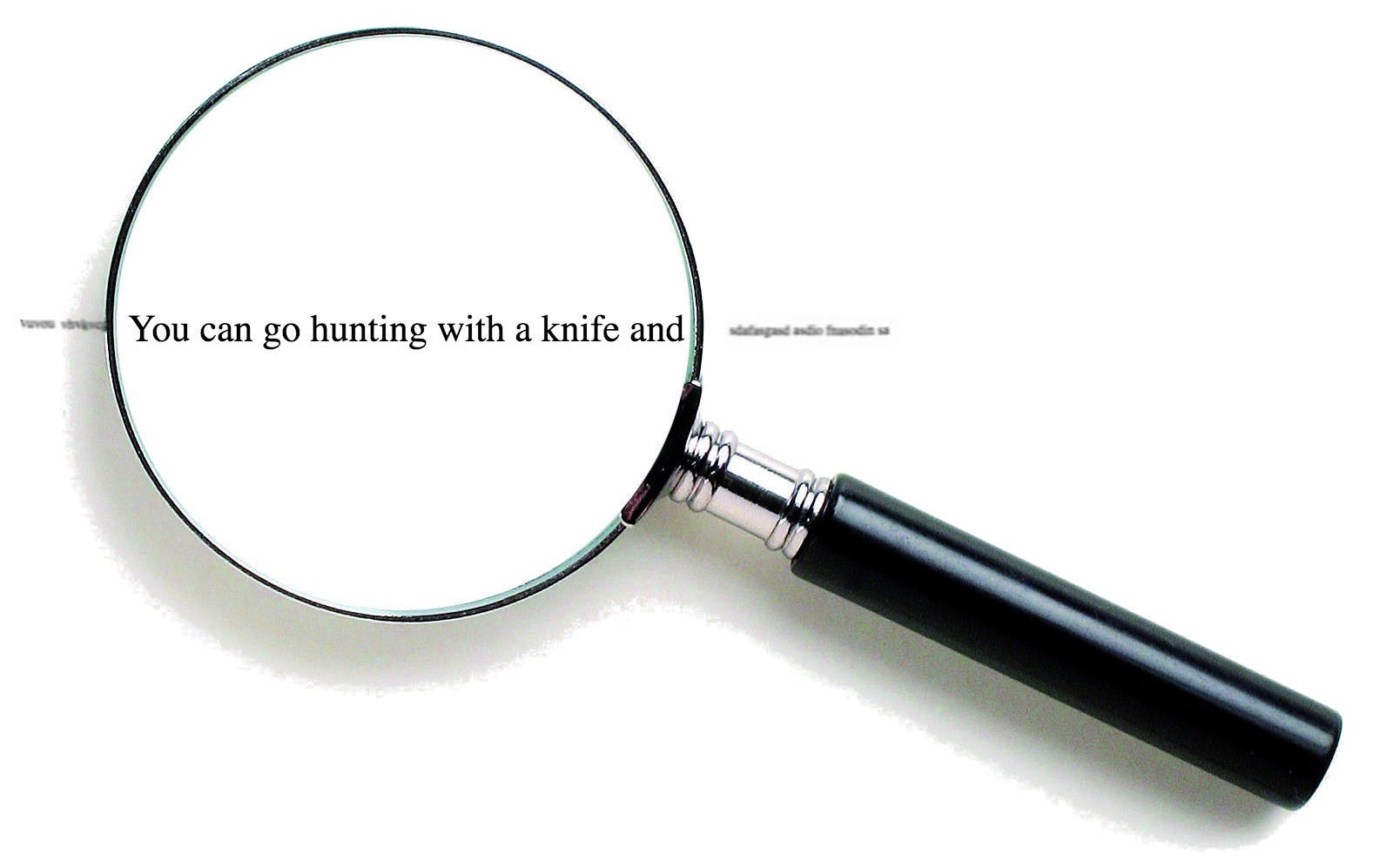 Imagine reading a book having to use a magnifying glass. If the magnifying power of the lens is low, one full sentence at a time can be read. You can easily focus on the meaning of the sentence as a whole, and you can easily predict what comes next. In the example below, the sentence “You can go hunting with a knife and” can easily be completed with “catch a bear.” This is how a person not on the autistic spectrum perceives the world.